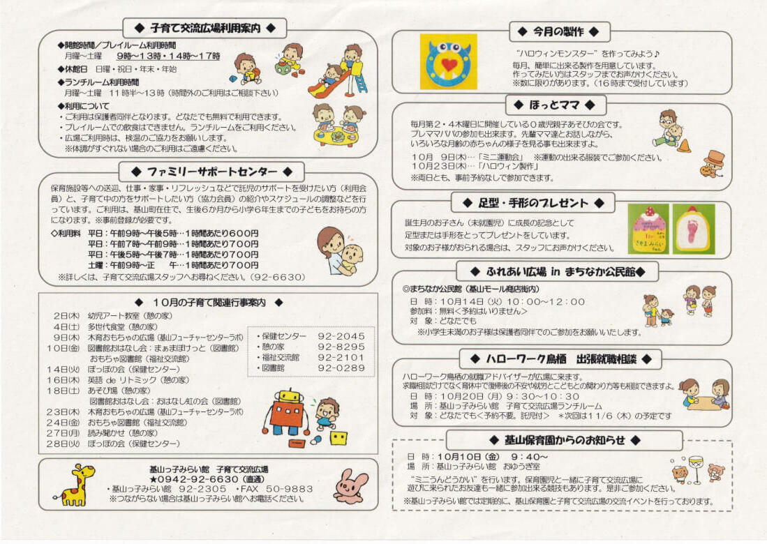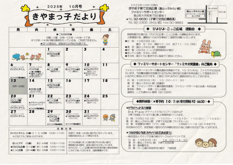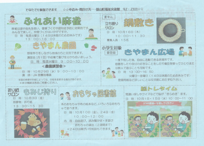 2025年10月の基山っ子みらい館では、参加無料・要予約のイベントが3つ予定されています。