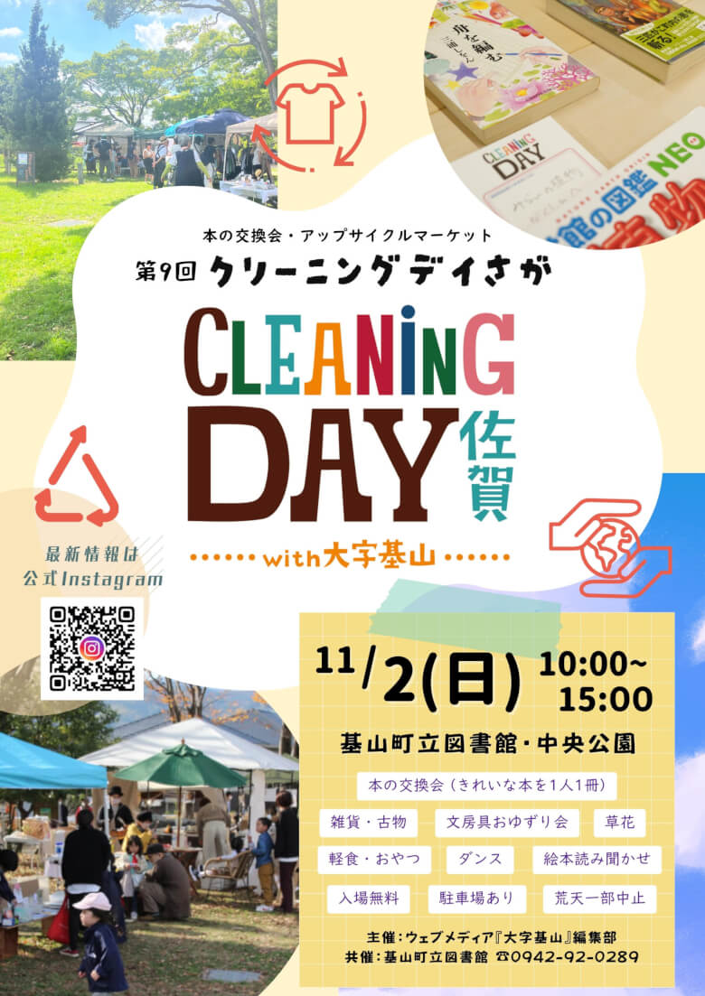 2025年11月2日の土曜日、佐賀県・基山町立図書館で「クリーニングデイ佐賀with大字基山」を開催します。基山町でイベントが始まって今回で9回目を迎え、秋の開催は2021年以来の2回目です。