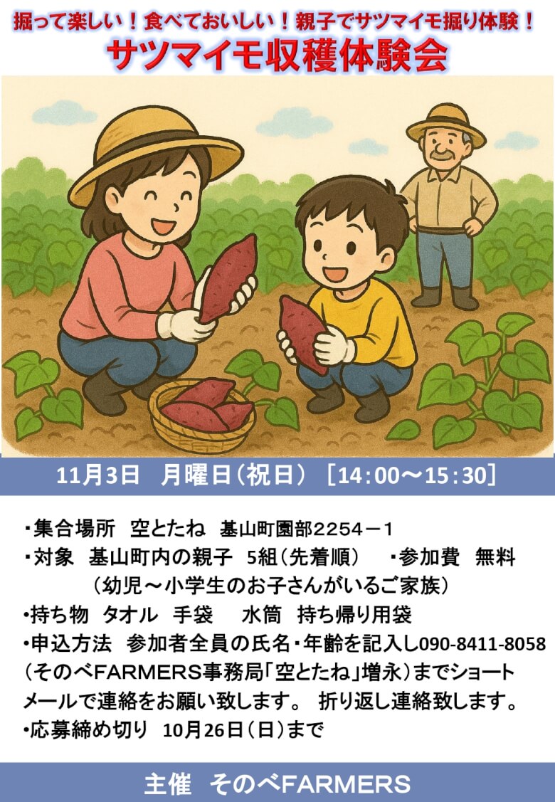佐賀県基山町のまちづくり団体「そのべファーマーズ」が、2025年11月3日(月・祝)と11月15日(土)に、基山町在住の幼児〜小学生がいる家族を対象にした参加無料の収穫体験イベントを行います。