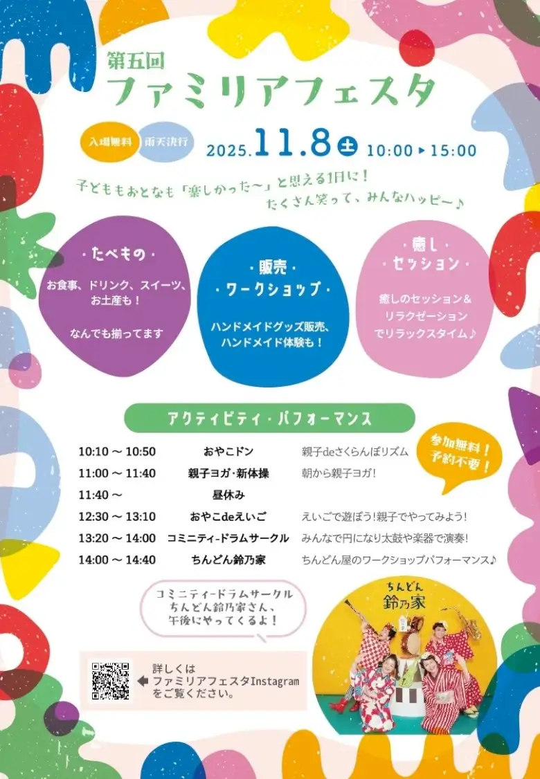 2025年11月8日(土)に佐賀県基山町の瀧光徳寺で、親子で楽しめるマルシェや体験アクティビティイベント「ファミリアフェスタ」が行われます。