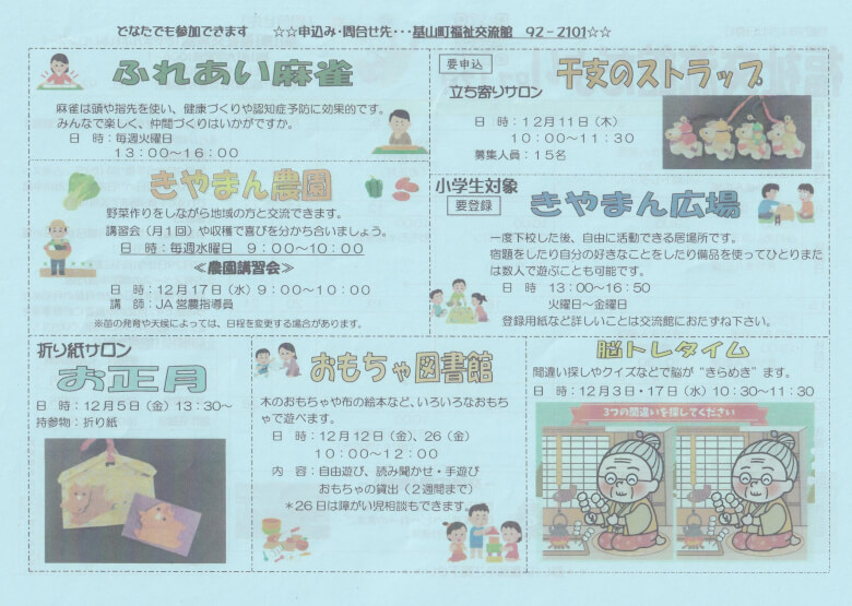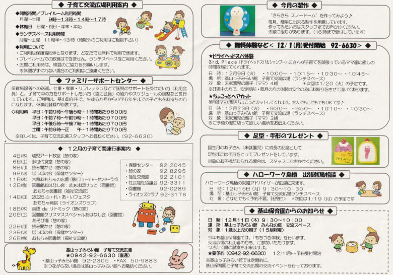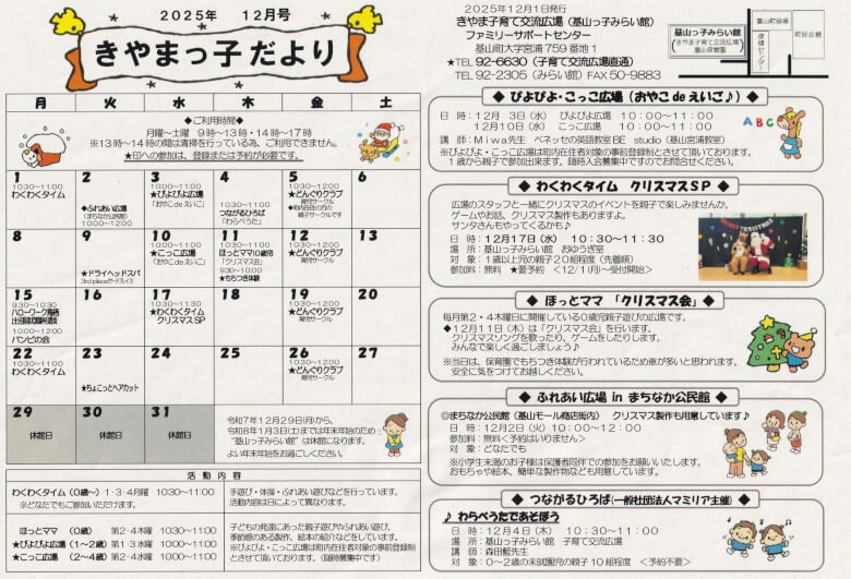 12月は、他にも参加無料・予約不要のイベントも盛りだくさん!詳しくは、きやまっ子だよりをご確認ください。
