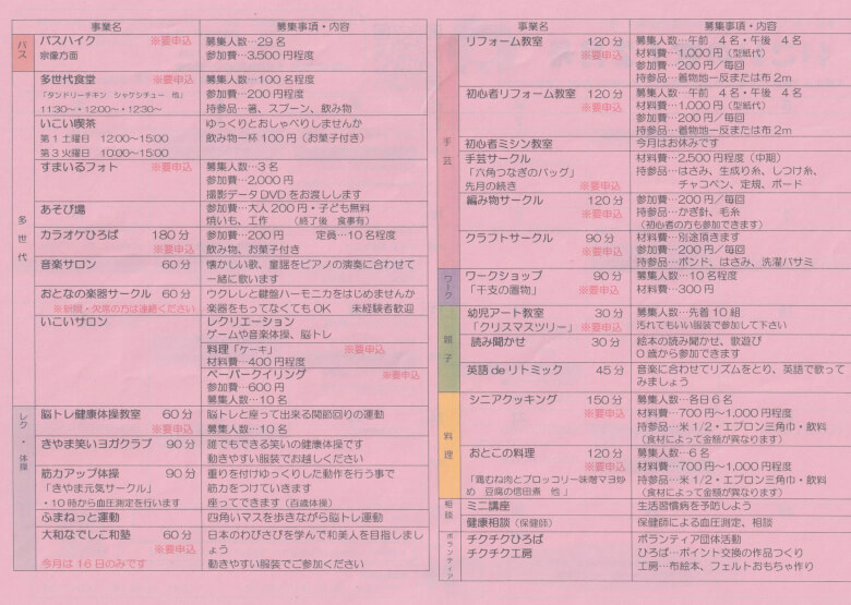 佐賀県基山町には町民が利用できる3つの主要施設があり、毎月各施設からイベントスケジュールをまとめたカレンダーが発行されています。